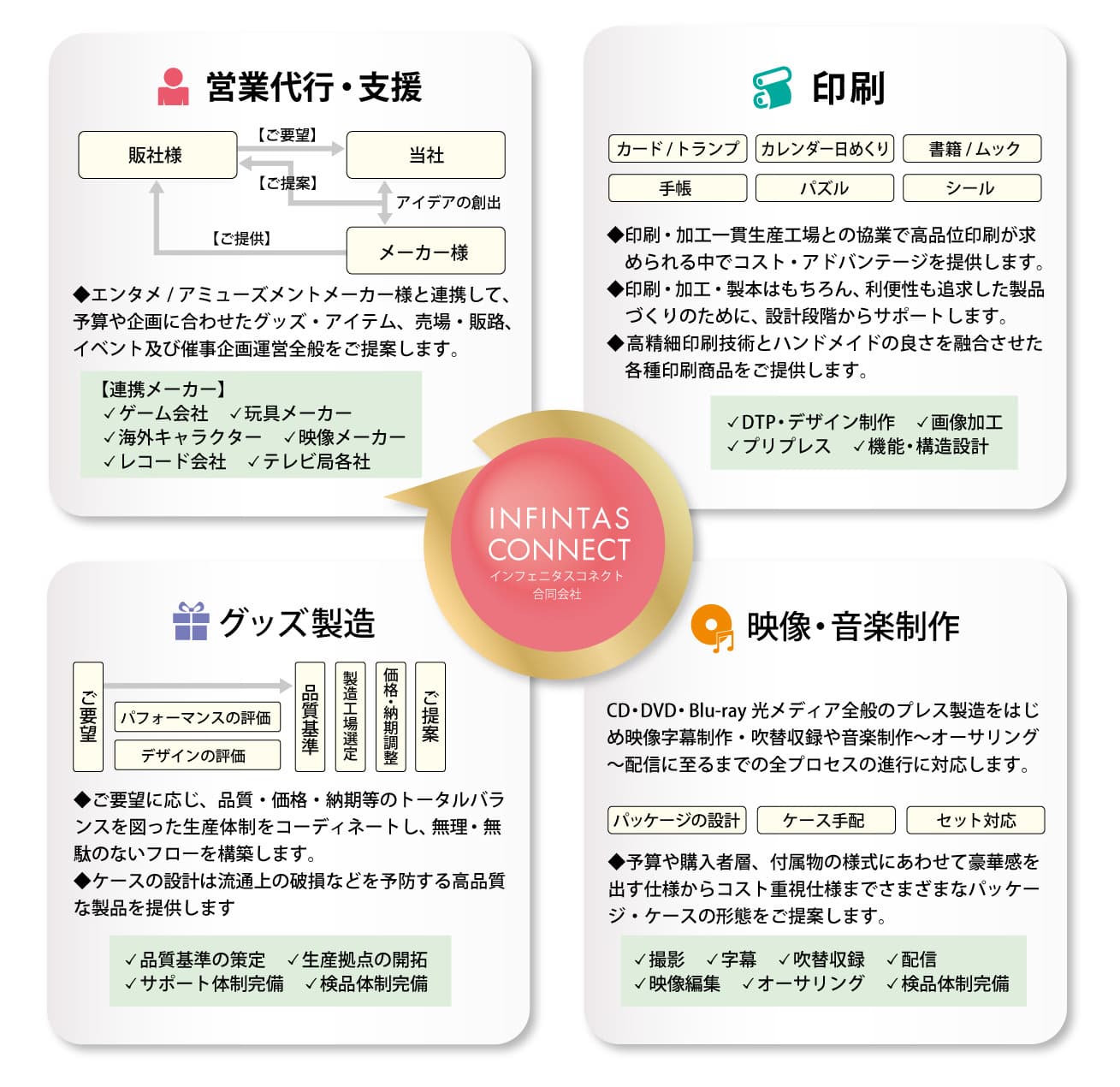 | ⑷ Blu-ray Disc・DVD・CD・その他メディア等、音楽・映像ソフト・書籍・雑誌の企画、制作、 |